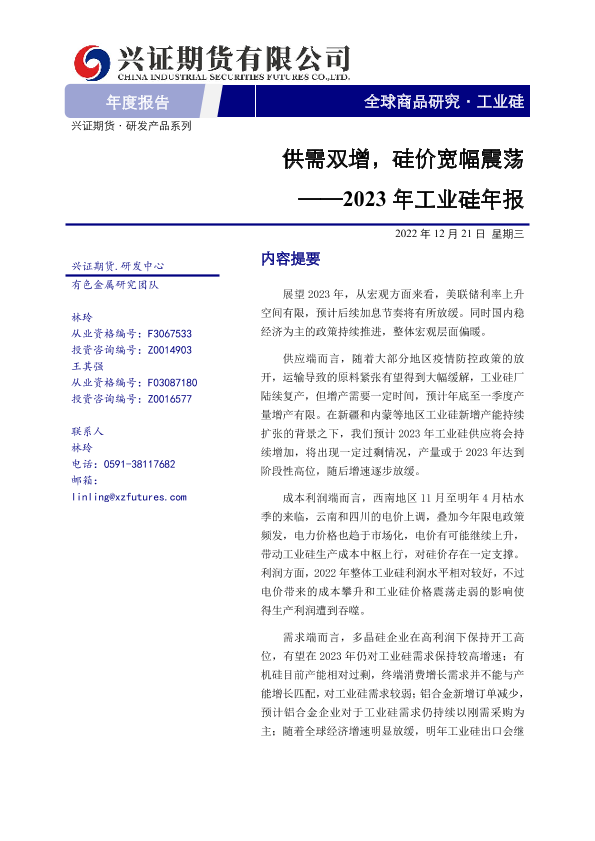 【兴证期货】【20221221】2023年工业硅年报:供需双增,硅价宽幅震荡-21页