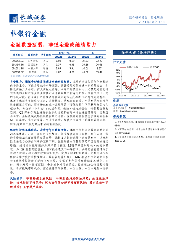 【长城证券】【20230813】非银行金融行业周报:金融数据疲弱,非银金融或继续蓄力-30页