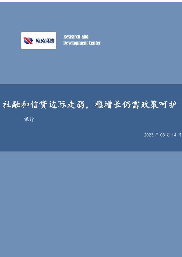 【信达证券】【20230814】社融和信贷边际走弱,稳增长仍需政策呵护-12页