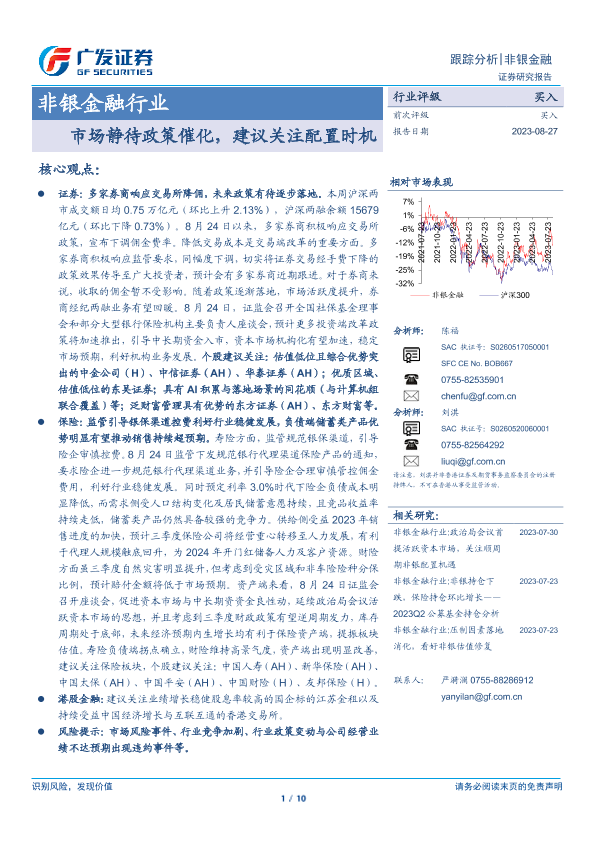 【广发证券】【20230827】非银金融行业跟踪分析:市场静待政策催化,建议关注配置时机-10页
