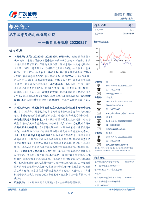 【广发证券】【20230827】抓牢三季度绝对收益窗口期——银行投资观察-27页