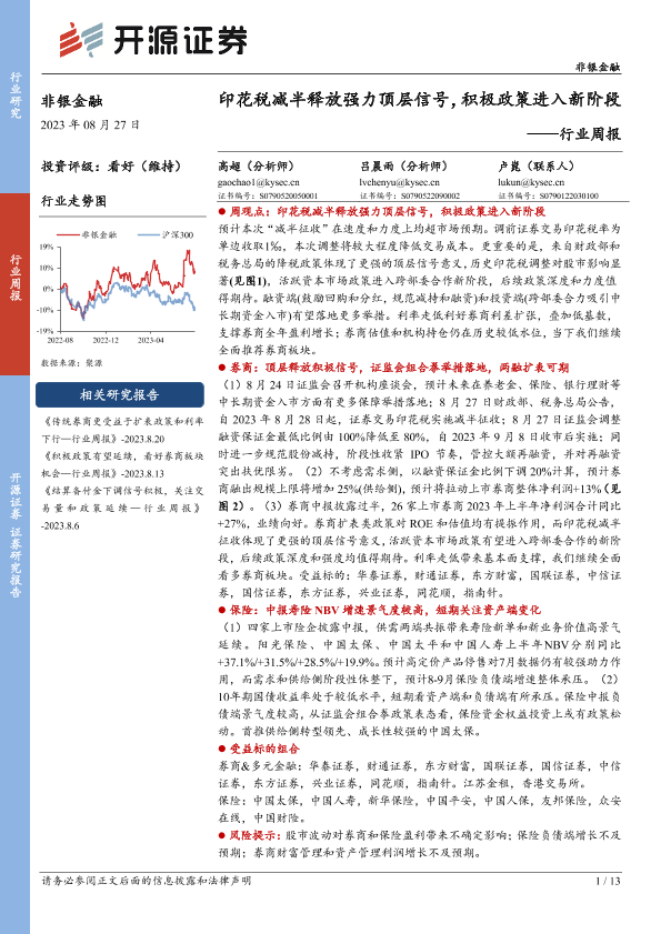 【开源证券】【20230827】非银金融行业周报:印花税减半释放强力顶层信号,积极政策进入新阶段-13页