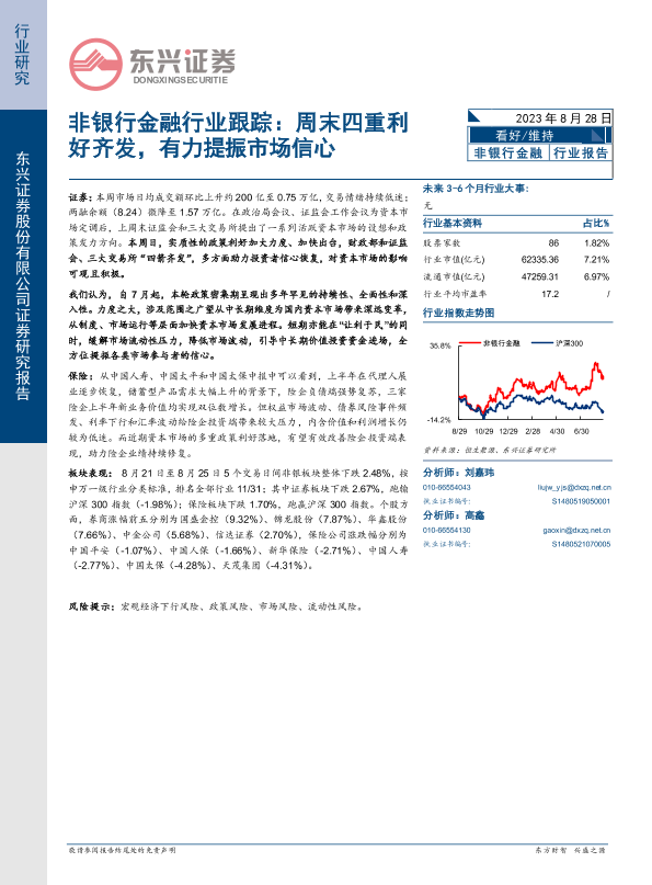 【东兴证券】【20230828】非银行金融行业跟踪:周末四重利好齐发,有力提振市场信心-13页