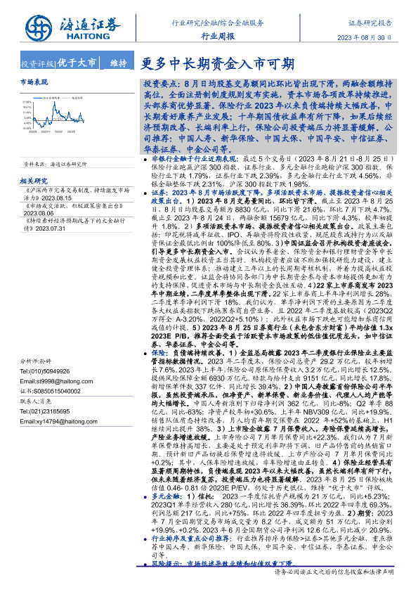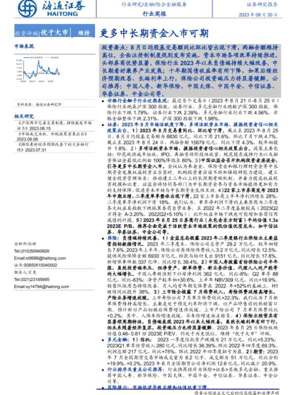【海通证券】【20230830】综合金融服务行业周报:更多中长期资金入市可期-13页