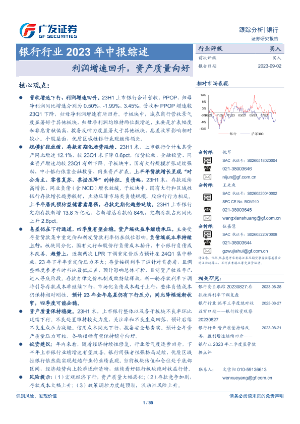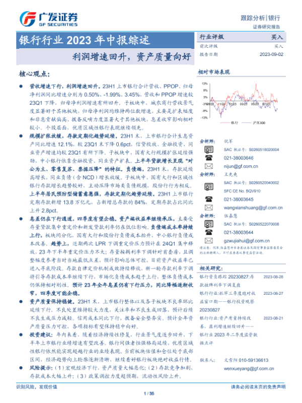 【广发证券】【20230902】银行行业2023年中报综述:利润增速回升,资产质量向好-35页