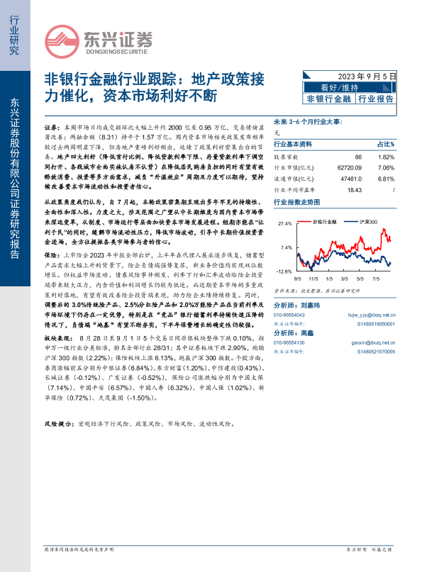 保险 房地产政策 证券 资本市场 非银行金融