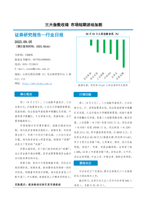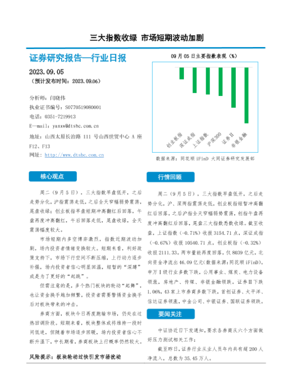 【大同证券】【20230905】三大指数收绿 市场短期波动加剧-10页