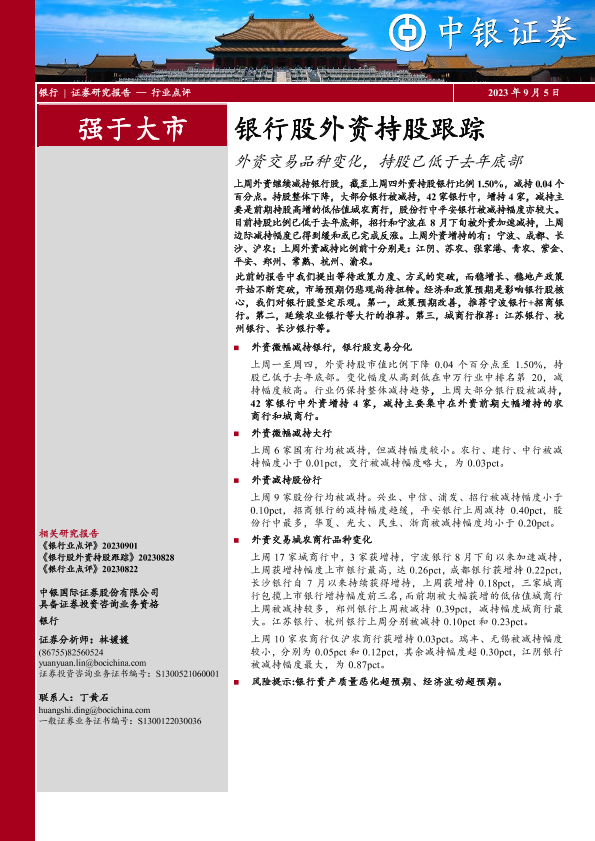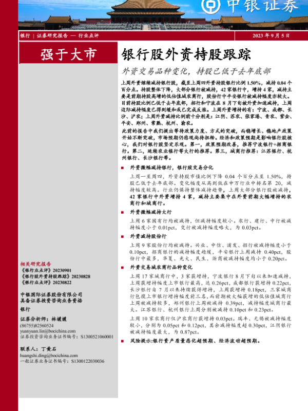 【中银证券】【20230905】银行股外资持股跟踪:外资交易品种变化,持股已低于去年底部-14页