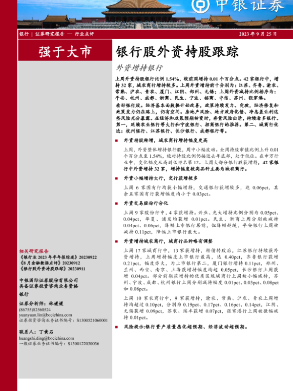 【中银证券】【20230925】银行股外资持股跟踪-13页