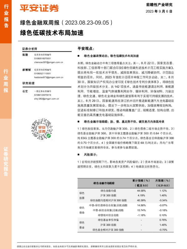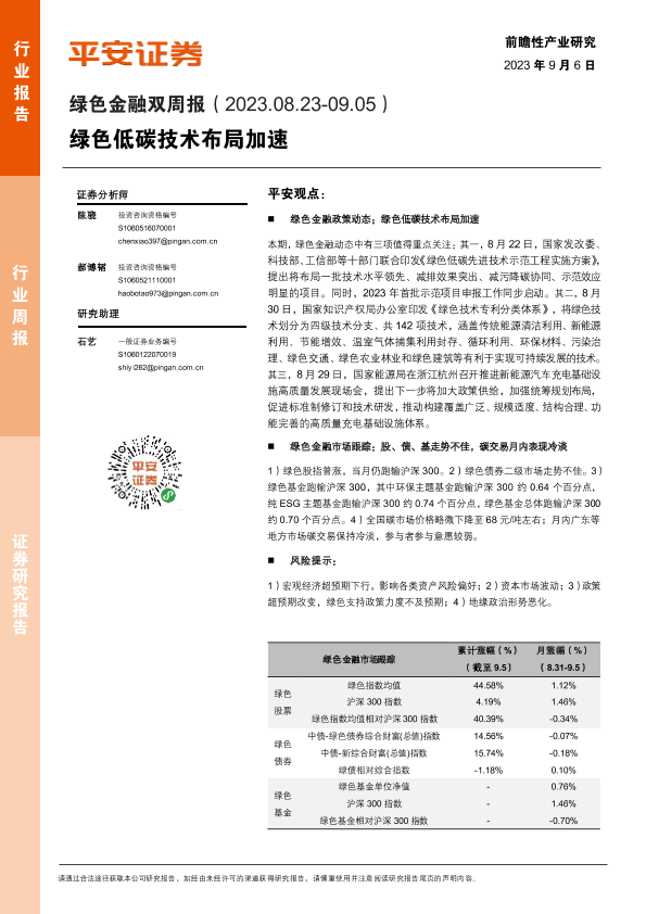 【平安证券】【20230906】绿色金融双周报:绿色低碳技术布局加速-10页