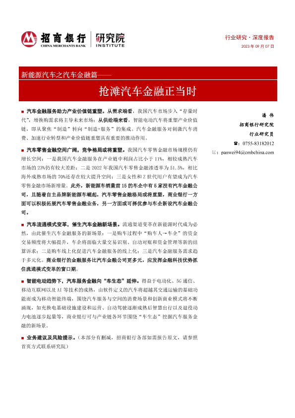 【招商银行】【20230907】新能源汽车之汽车金融篇:抢滩汽车金融正当时-23页