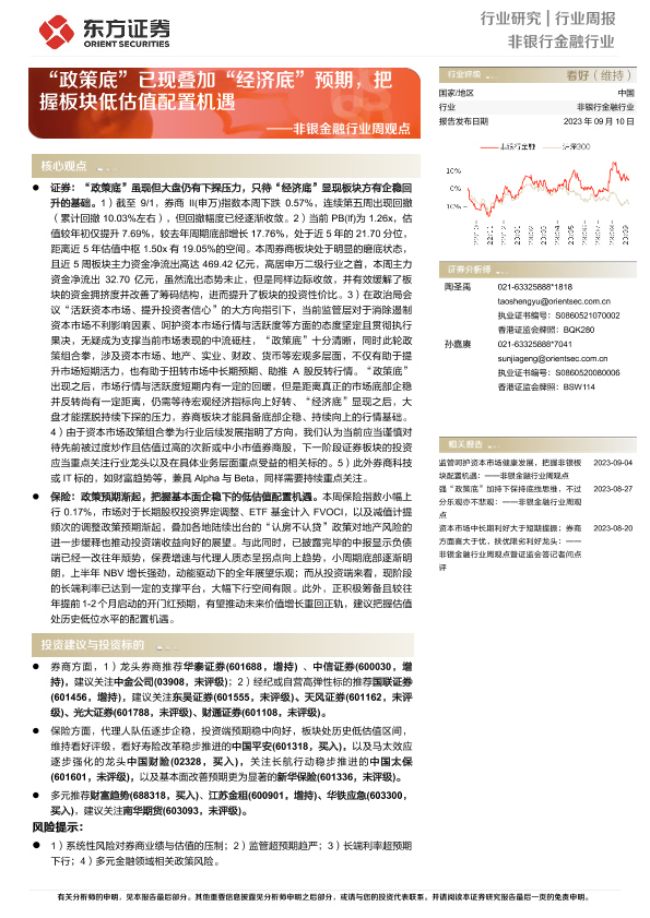 【东方证券】【20230910】非银金融行业周观点:“政策底”已现叠加“经济底”预期,把握板块低估值配置机遇-14页