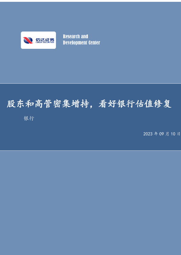 【信达证券】【20230910】股东和高管密集增持,看好银行估值修复-15页