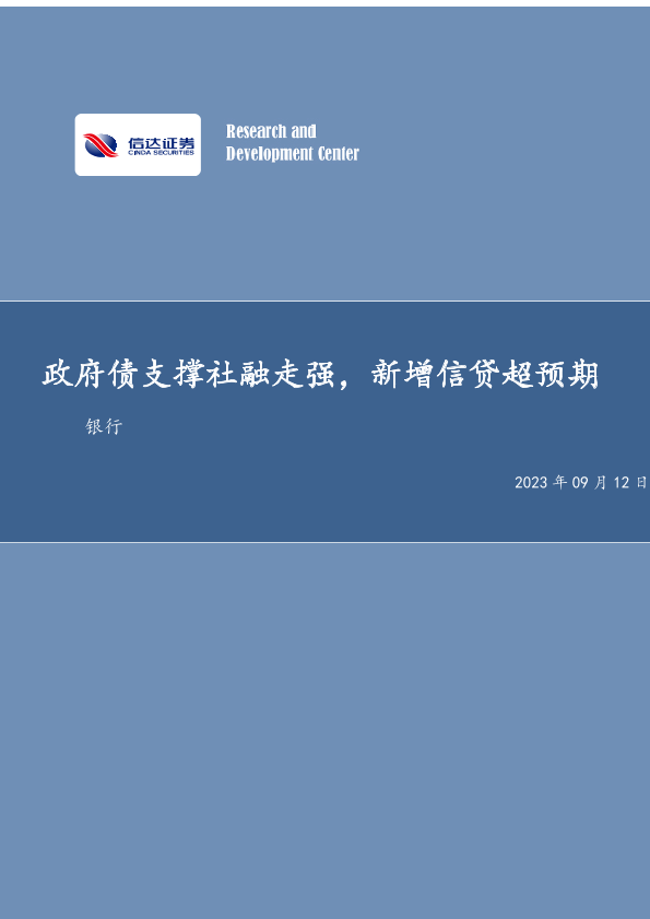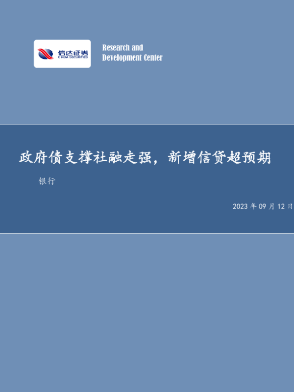 【信达证券】【20230912】政府债支撑社融走强,新增信贷超预期-13页
