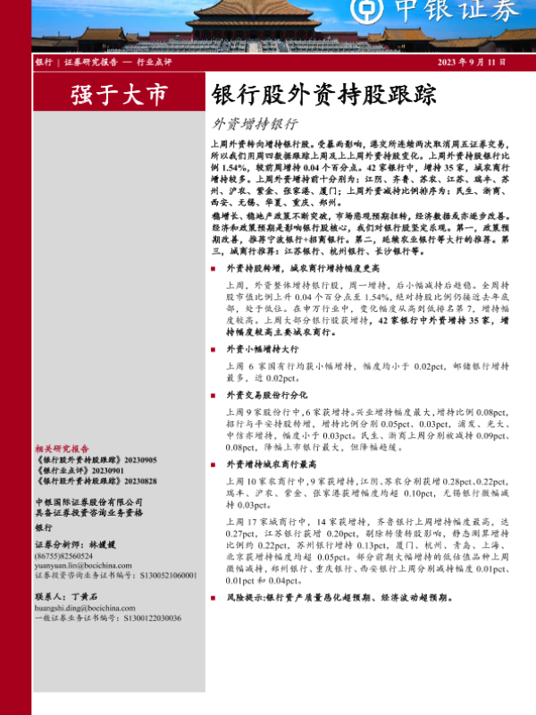 【中银证券】【20230911】银行股外资持股跟踪:外资增持银行-13页