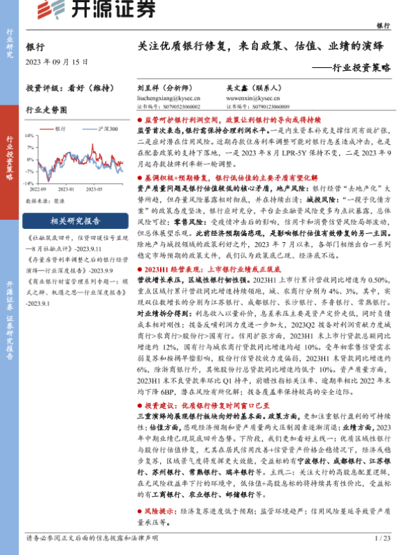 【开源证券】【20230915】关注优质银行修复,来自政策、估值、业绩的演绎-23页
