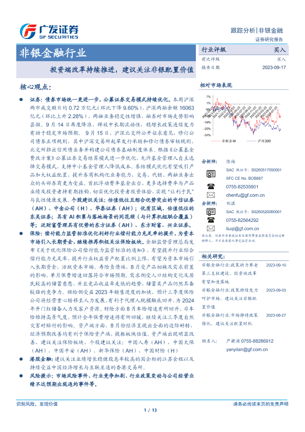 【广发证券】【20230917】非银金融行业:投资端改革持续推进,建议关注非银配置价值-13页