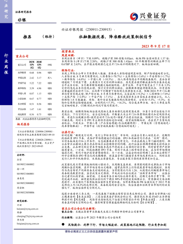 【兴业证券】【20230917】社融数据改善,降准释放政策积极信号-13页