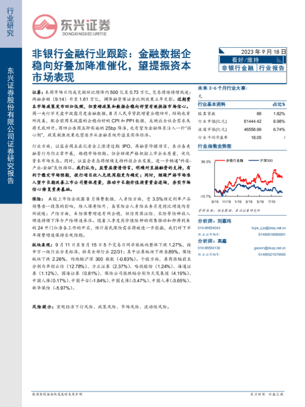 【东兴证券】【20230918】非银行金融行业跟踪:金融数据企稳向好叠加降准催化,望提振资本市场表现-11页