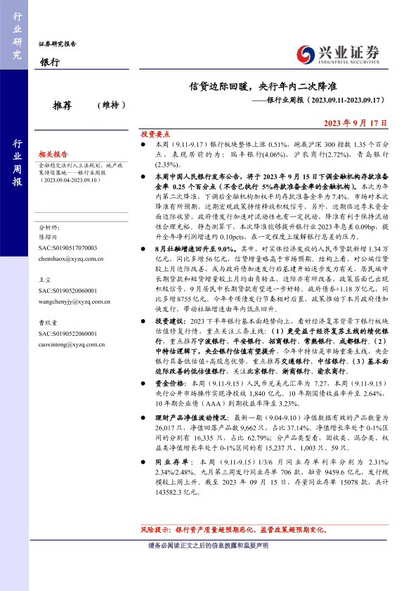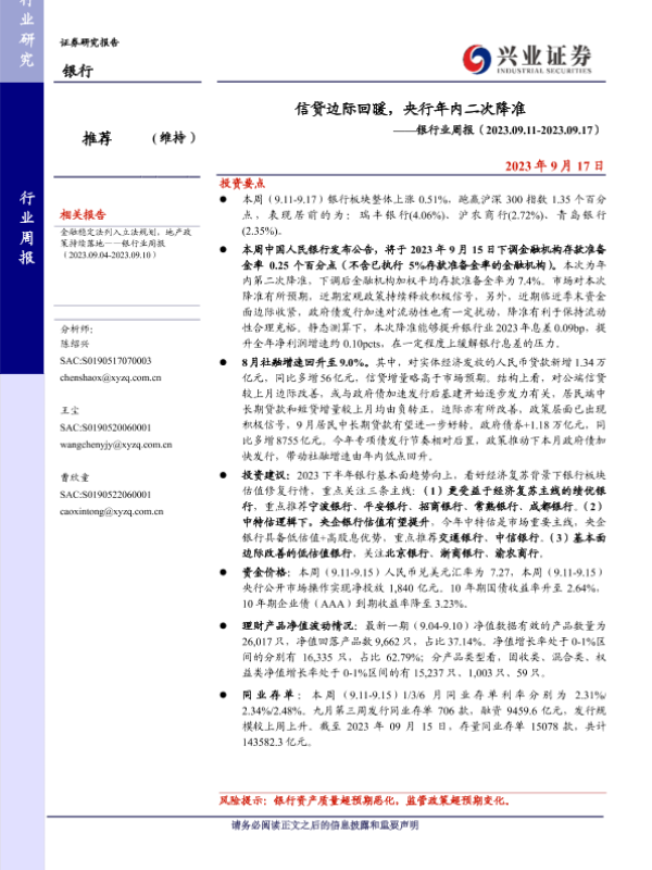 【兴业证券】【20230917】信贷边际回暖,央行年内二次降准-15页