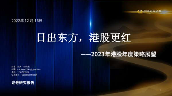 【国泰君安证券】【20221216】2023年港股年度策略展望:日出东方,港股更红-92页