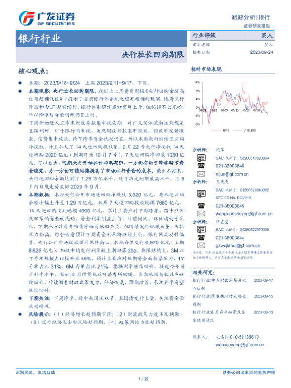 【广发证券】【20230924】银行行业跟踪分析:央行拉长回购期限-35页