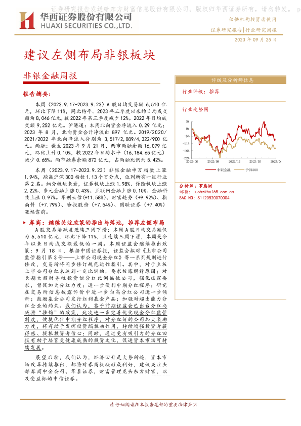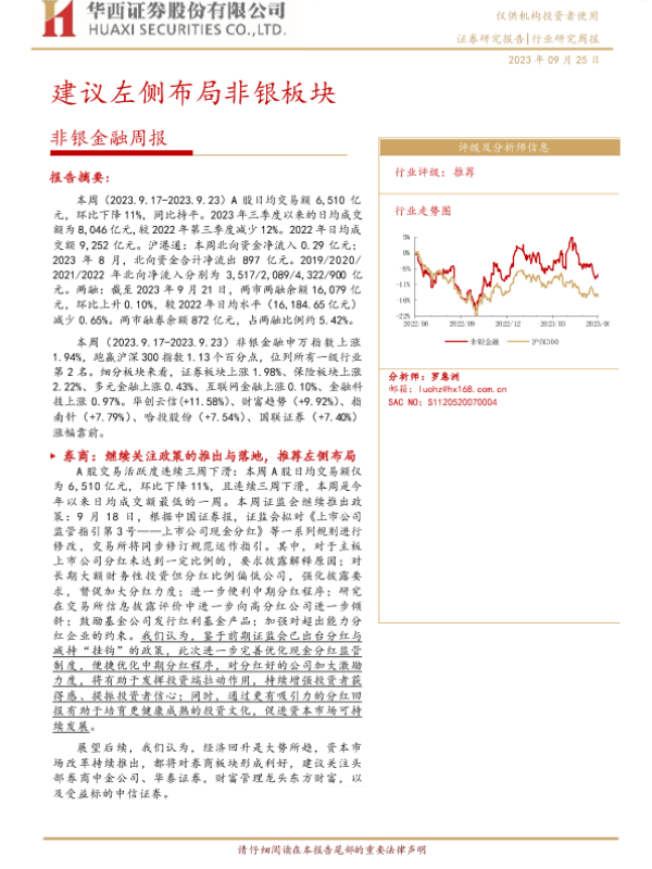 【华西证券】【20230925】非银金融周报:建议左侧布局非银板块-13页