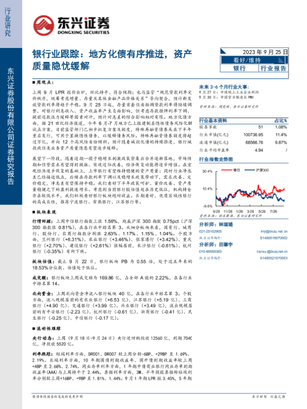 【东兴证券】【20230925】银行业跟踪:地方化债有序推进,资产质量隐忧缓解-10页
