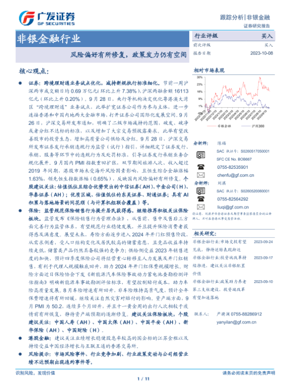 【广发证券】【20231008】非银金融行业:风险偏好有所修复,政策发力仍有空间-11页