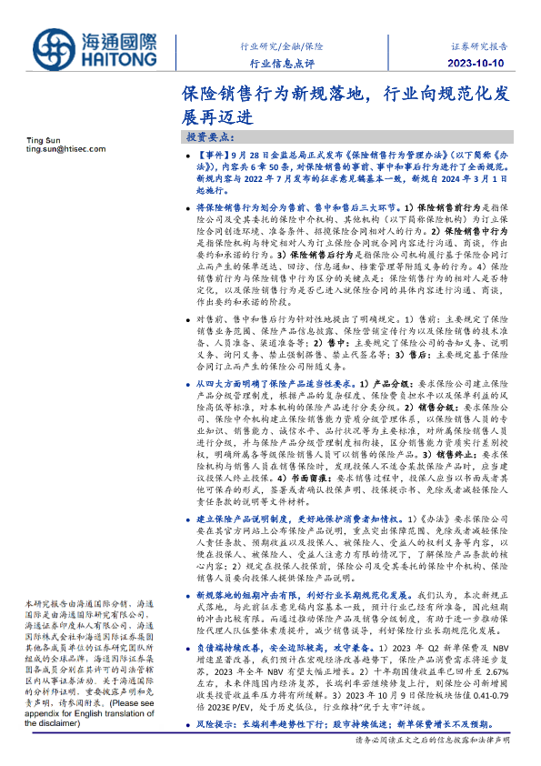 【海通国际】【20231010】保险销售行为新规落地,行业向规范化发展再迈进-10页