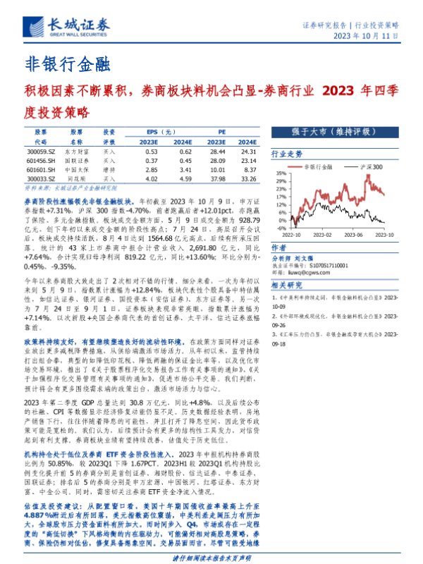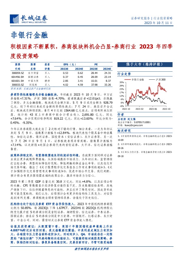 【长城证券】【20231011】非银行金融:券商行业2023年四季度投资策略-13页