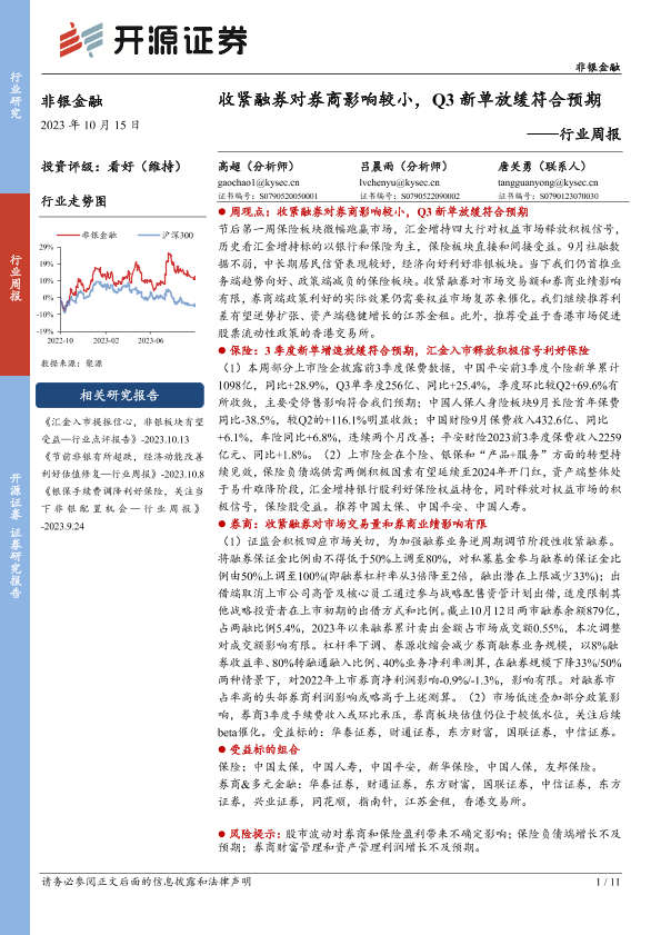 【开源证券】【20231015】收紧融券对券商影响较小,Q3新单放缓符合预期-11页