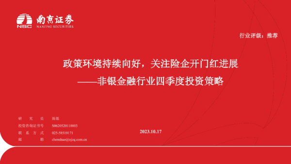 【南京证券】【20231017】非银金融行业四季度投资策略:政策环境持续向好,关注险企开门红进展-31页