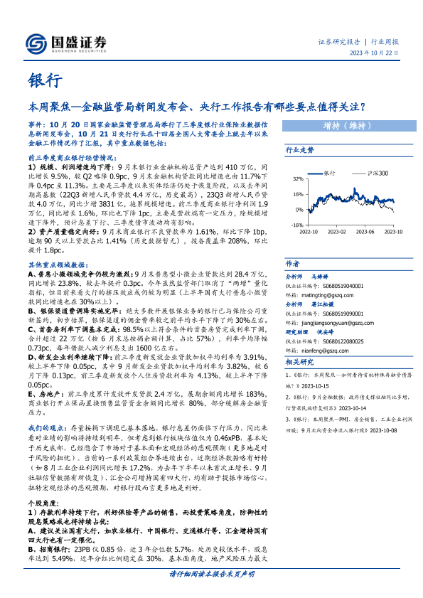 【国盛证券】【20231022】银行本周聚焦:金融监管局新闻发布会、央行工作报告有哪些要点值得关注?-12页