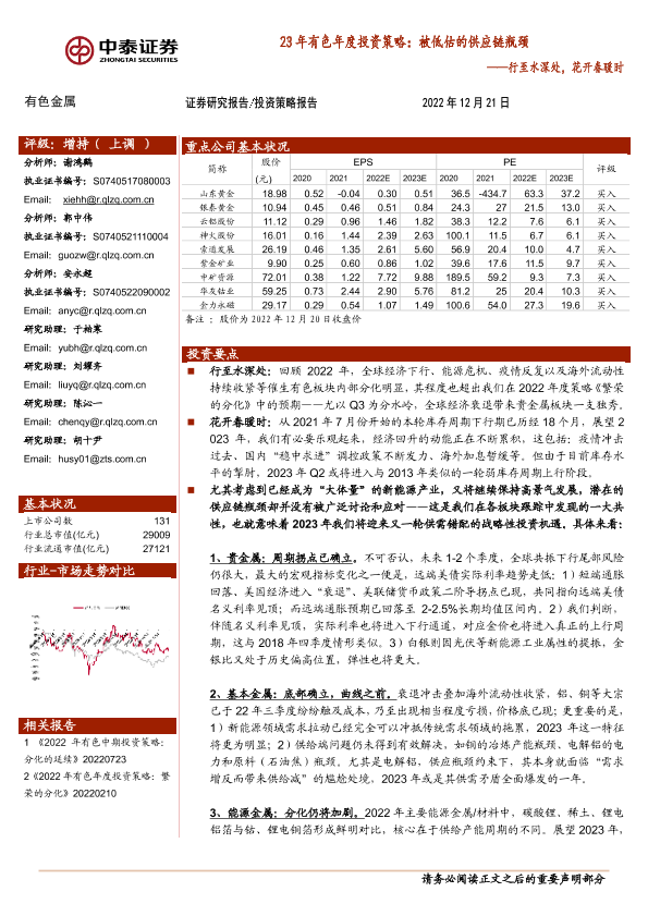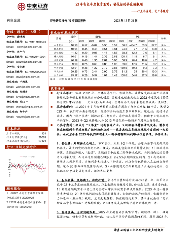 【中泰证券】【20221221】23年有色行业年度投资策略:被低估的供应链瓶颈,行至水深处,花开春暖时-92页