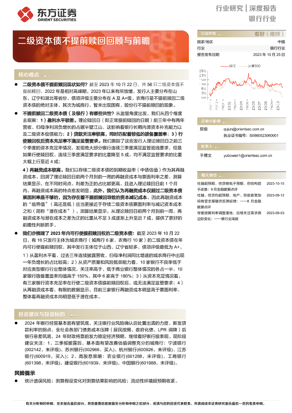 【东方证券】【20231025】银行行业深度报告:二级资本债不提前赎回回顾与前瞻-13页