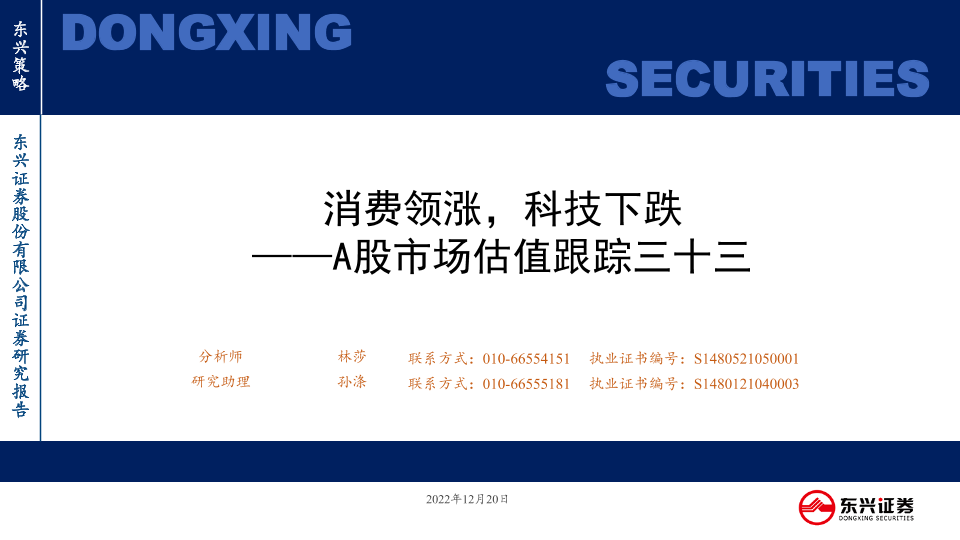 【东兴证券】【20221220】A股市场估值跟踪三十三:消费领涨,科技下跌-23页