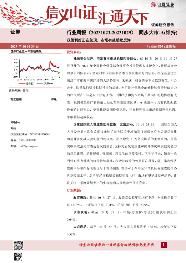 【山西证券】【20231030】证券行业周报:政策利好正在兑现,市场有望延续反弹-14页
