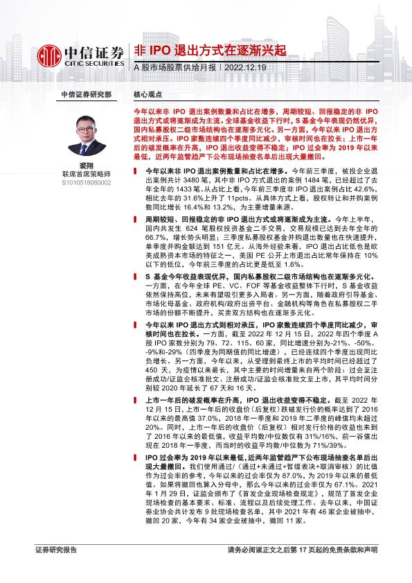 【中信证券】【20221219】A股市场股票供给月报:非IPO退出方式在逐渐兴起-18页