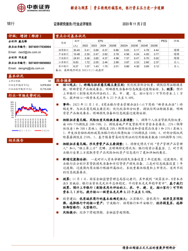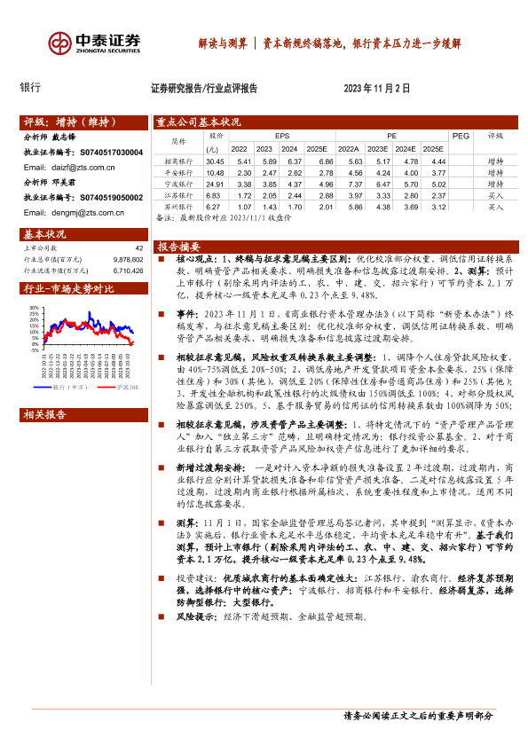 【中泰证券】【20231102】解读与测算 资本新规终稿落地,银行资本压力进一步缓解-12页