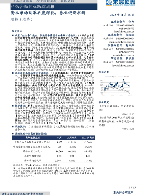 【东吴证券】【20231105】非银金融行业跟踪周报:资本市场改革再度深化,券业迎新机遇-13页