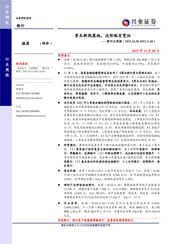 【兴业证券】【20231105】资本新规落地,边际略有宽松-15页