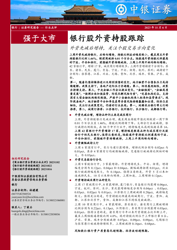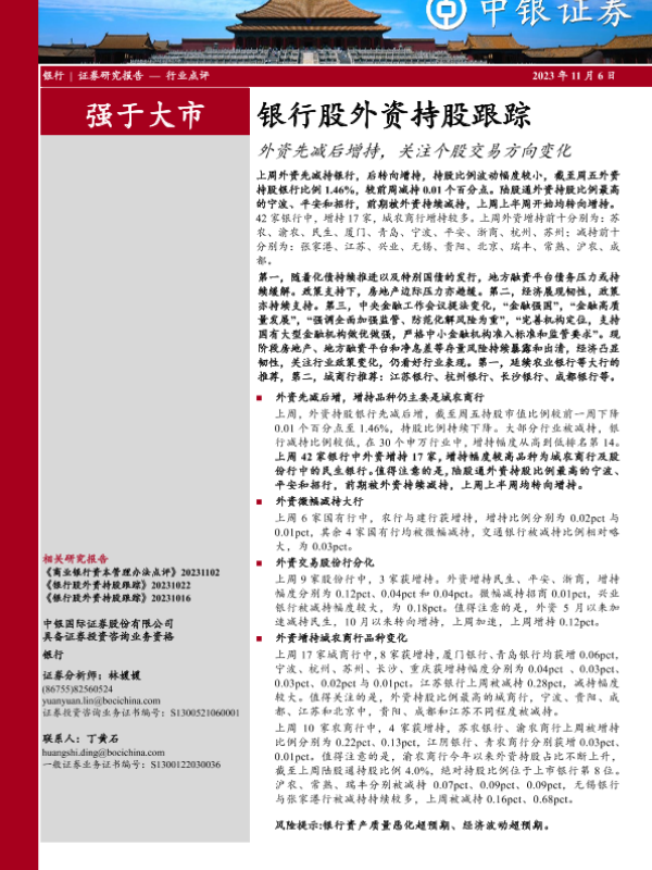 【中银证券】【20231106】银行股外资持股跟踪:外资先减后增持,关注个股交易方向变化-12页