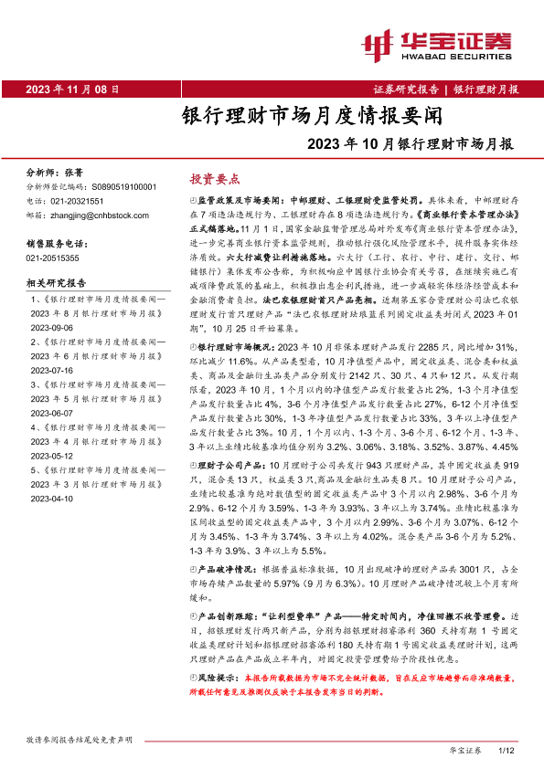 【华宝证券】【20231108】2023年10月银行理财市场月报:银行理财市场月度情报要闻-12页