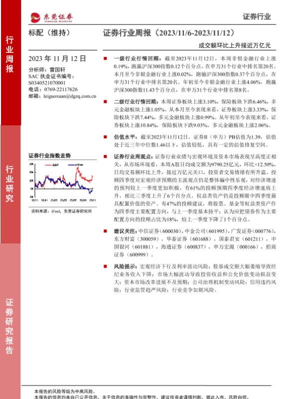 【东莞证券】【20231112】证券行业周报:成交额环比上升接近万亿元-11页