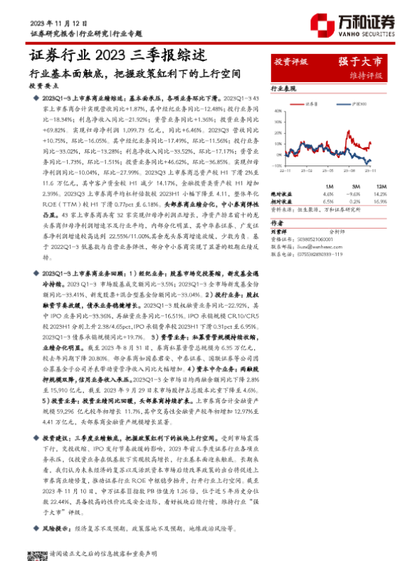 【万和证券】【20231112】证券行业2023三季报综述:行业基本面触底,把握政策红利下的上行空间-12页