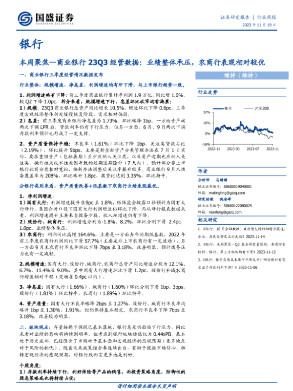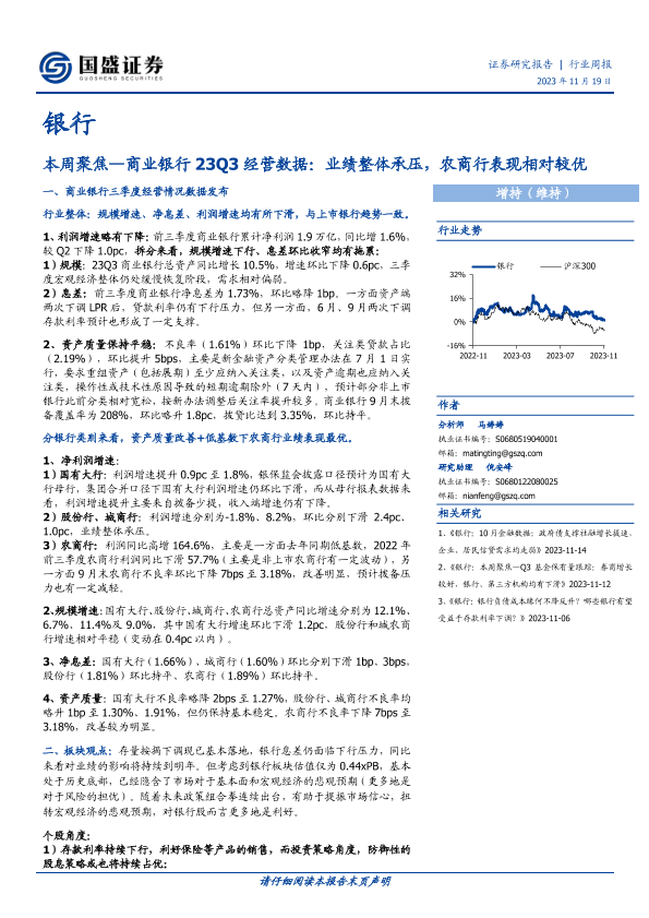 【国盛证券】【20231119】商业银行23Q3经营数据:业绩整体承压,农商行表现相对较优-13页