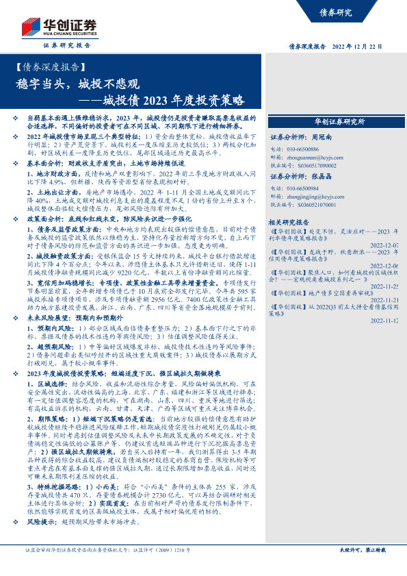 【华创证券】【20221222】【债券深度报告】城投债2023年度投资策略:稳字当头,城投不悲观-42页
