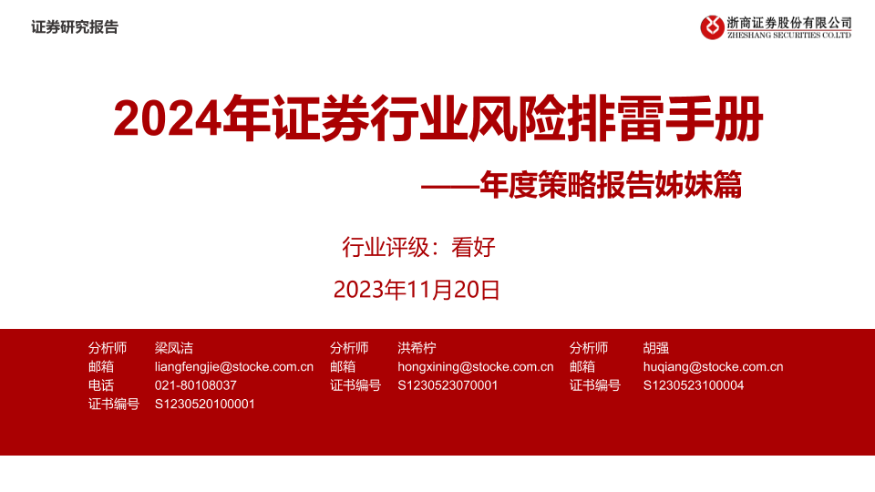 【浙商证券】【20231120】2024年证券行业风险排雷手册:年度策略报告姊妹篇-18页