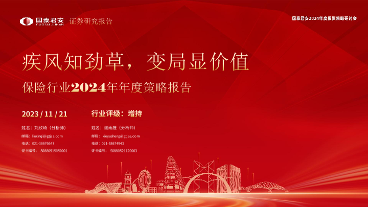 【国泰君安证券】【20231121】保险行业2024年年度策略报告:疾风知劲草,变局显价值-48页